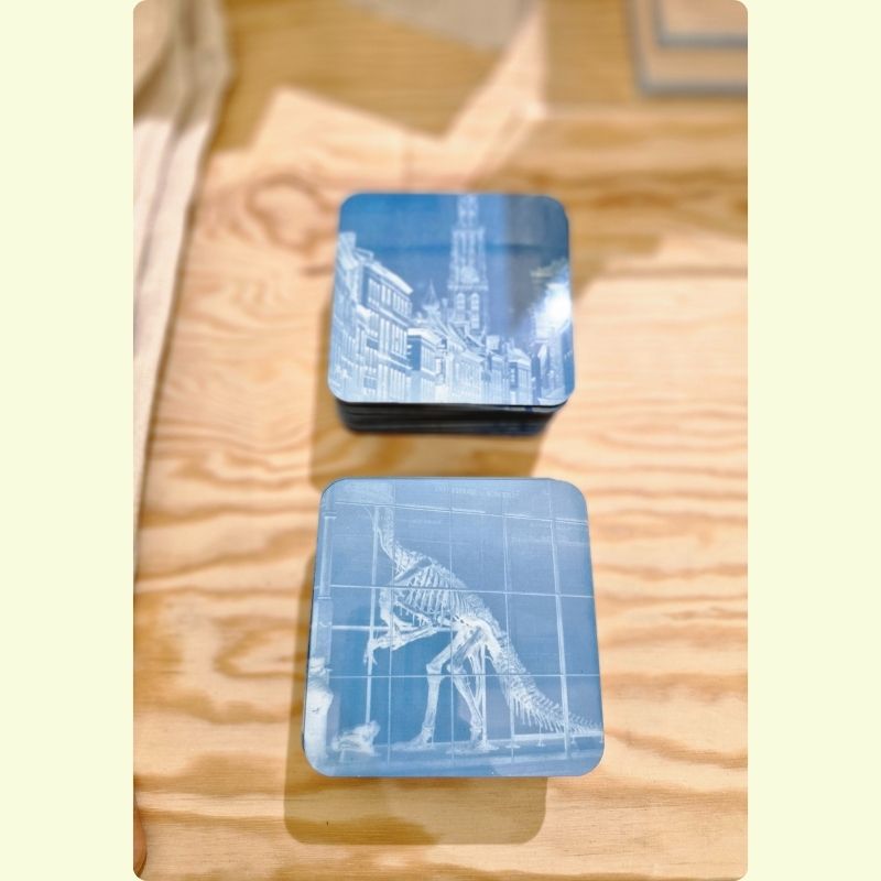 Deze exclusieve onderzetter uit de FOMU Collectie brengt een stukje Belgische geschiedenis naar je tafel. De onderzetter toont een fascinerende albuminedruk uit 1883 van Alexandre (Albert Edouard Drains), die de beroemde Iguanodon van Bernissart vastlegde.